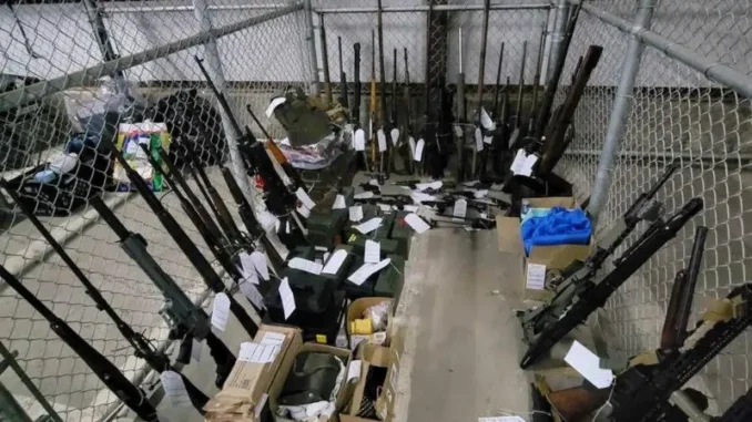 Police said a search conducted in January 2024 led to the seizure of 16 explosive devices, 83 firearms and accessories, nearly 11,000 rounds of ammunition and around 130 magazines. Night-vision goggles and military equipment were also found.